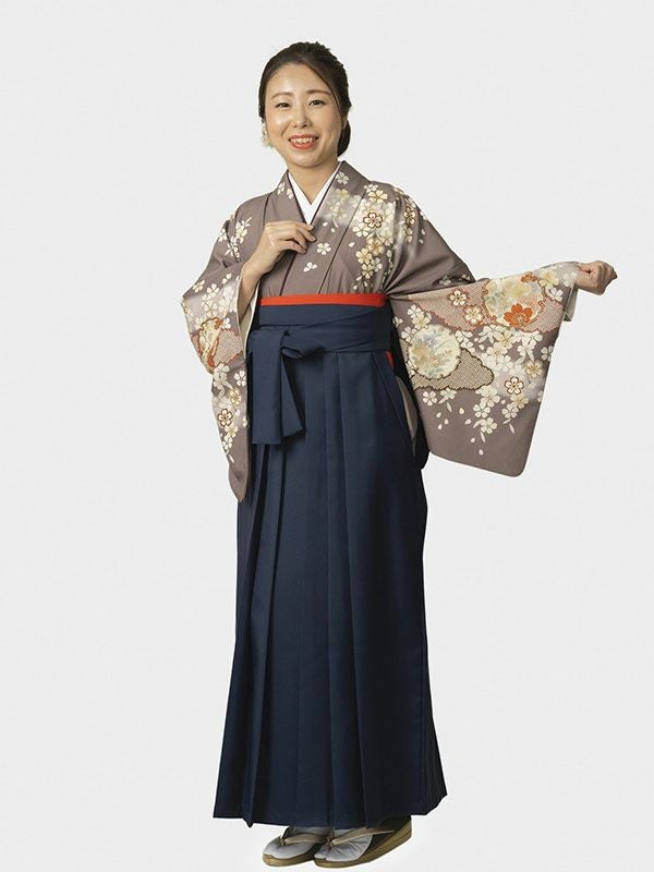 卒業式用レンタル訪問着 ブラウン 袴 紺無地