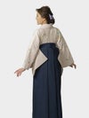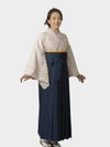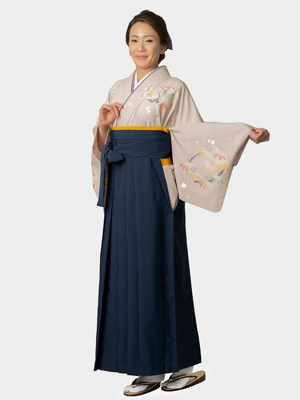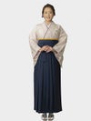 落ち着きのある薄いパープルピンクに紺の袴でスッキリとした印象。ピンク系ですが、幅広い年代の方にお勧めです