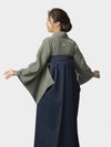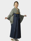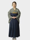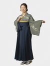 ■レンタル袴「和服美」の訪問着、絹100%「さび色 草花」のポイント 控えめな色で、落ち着きのあるシンプルな柄の着物ですが、華やかさを引き出す刺し色の黄色がアクセントの格式ある安心の訪問着に袴セット。