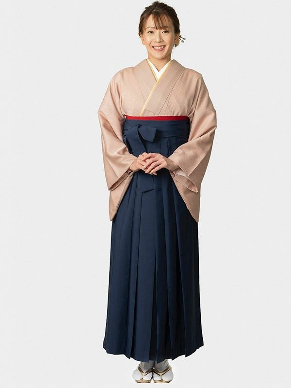 卒業式用レンタルはかま 色無地 グレーピンク 袴 紺無地 一つ紋入 東レシルック