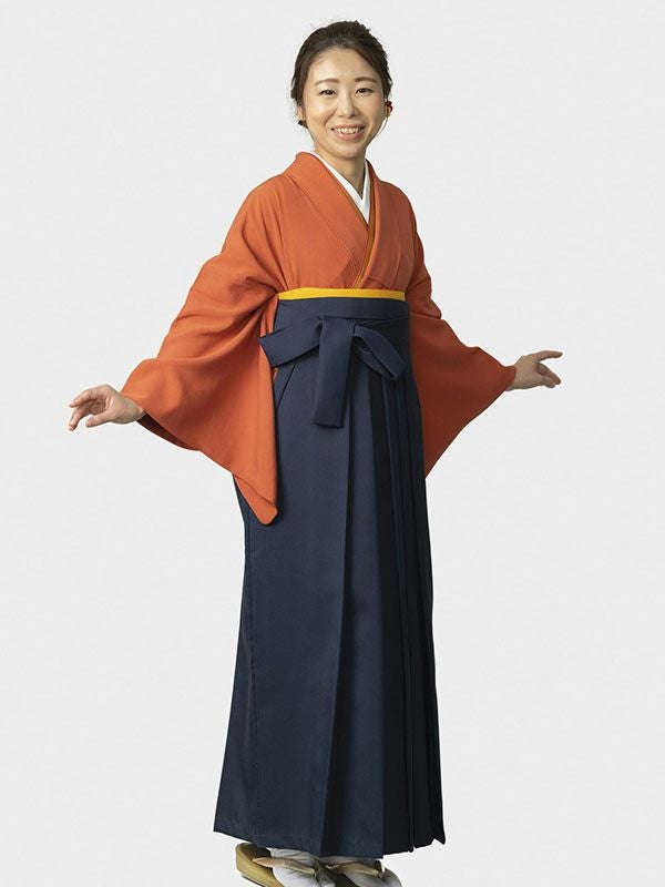 4. 卒業式用レンタルはかま 色無地 赤茶 袴 紺無地 一つ紋入 絹100%